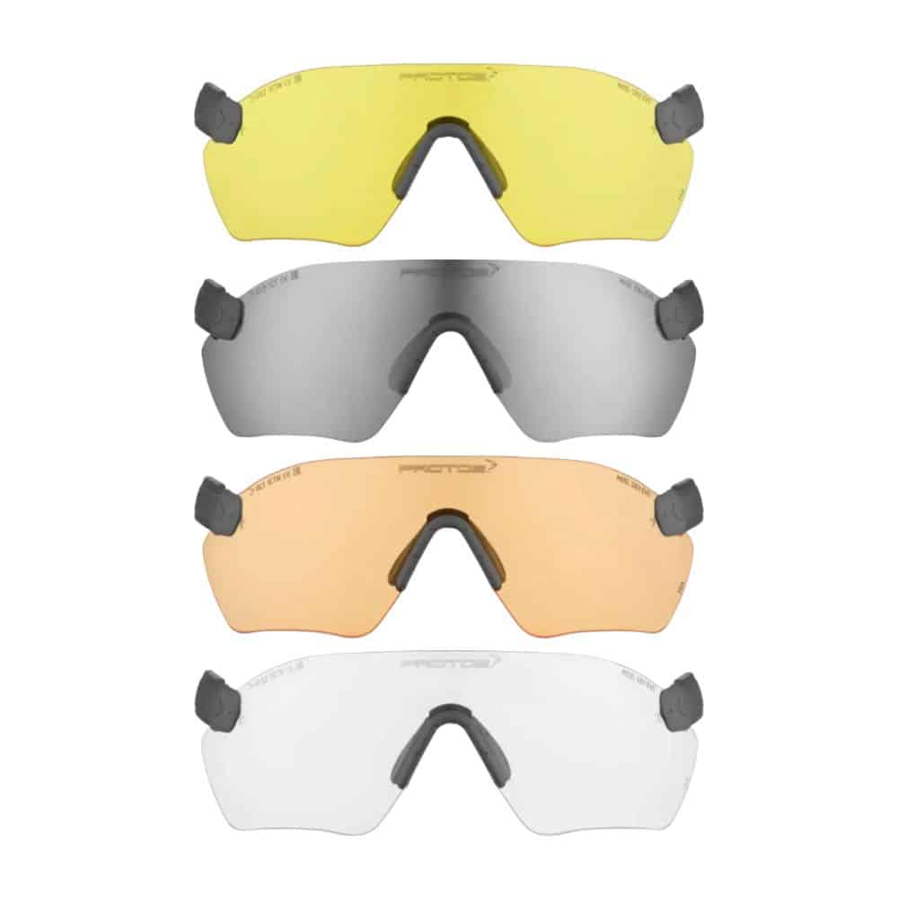 Leur principal atout réside dans leur intégration parfaite avec le casque Protos®. Contrairement aux lunettes classiques, elles ne passent pas derrière les oreilles, évitant ainsi toute gêne ou point de pression. Fixées directement au casque, elles garantissent une étanchéité optimale de la protection auditive tout en restant parfaitement en place. Cette conception intégrée assure également que les lunettes sont toujours sécurisées et accessibles, exactement là où vous les avez laissées.