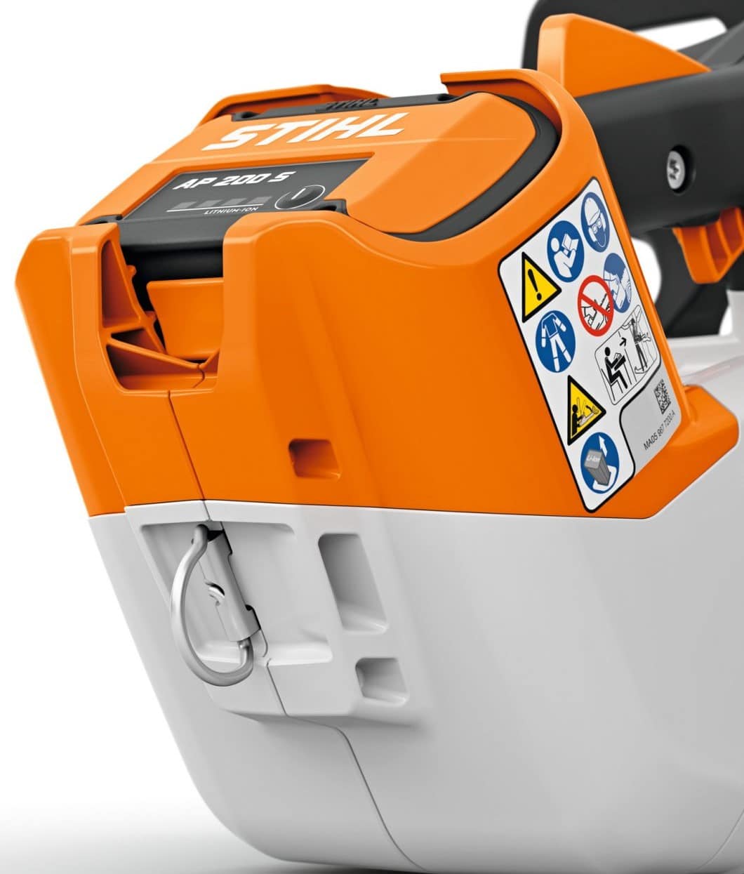 - Une manipulation sécurisée : grâce à l’œillet rabattable, vous pouvez fixer l’outil à une corde de suspension, puis le tirer vers le haut dans la cime de l’arbre et le redescendre. Vous pouvez également l’utiliser pour sécuriser la fixation de la machine. Une fois replié, l’œillet ne représente pas une gêne pendant le travail ou pour le rangement.