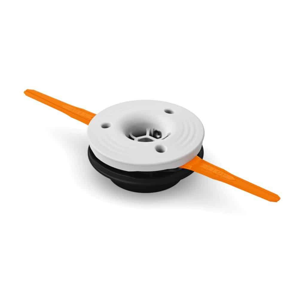 Tête faucheuse robuste à 2 lames en plastique, idéale pour le fauchage d’herbe dense. Les lames permettent une tonte plus économe en énergie par rapport au fil de coupe, et donc une autonomie plus longue en cas d’utilisation avec une débroussailleuse à batterie. Les deux lames de coupe permettent une réduction du bruit et une meilleure efficacité énergétique.