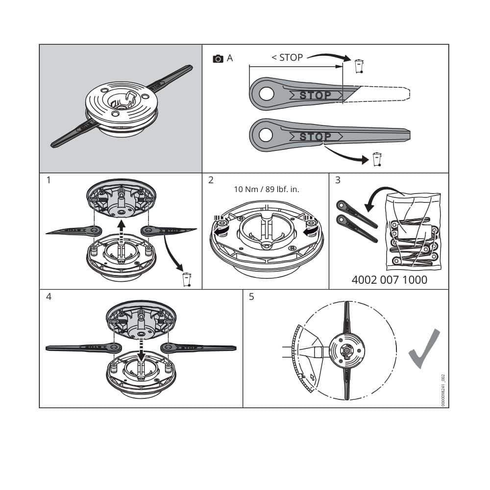 Tête faucheuse robuste à 2 lames en plastique, idéale pour le fauchage d’herbe dense. Les lames permettent une tonte plus économe en énergie par rapport au fil de coupe. Les deux lames de coupe (au lieu de 3) permettent une réduction du bruit et une meilleure efficacité énergétique. La tête est livrée avec 2 lames montées et 6 lames de rechange.