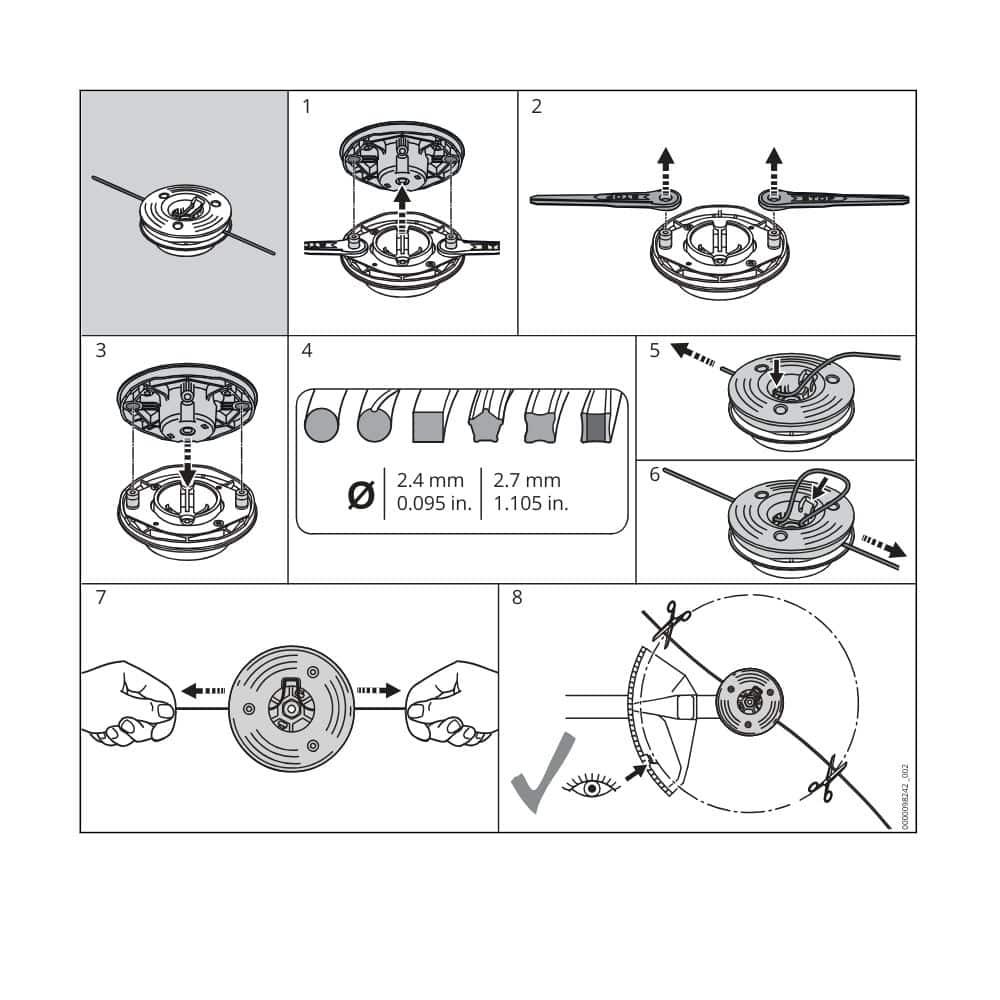 - Egalement utilisable avec du fil de coupe : Ø 2,4 mm (orange) ou Ø 2,7 mm (rouge)